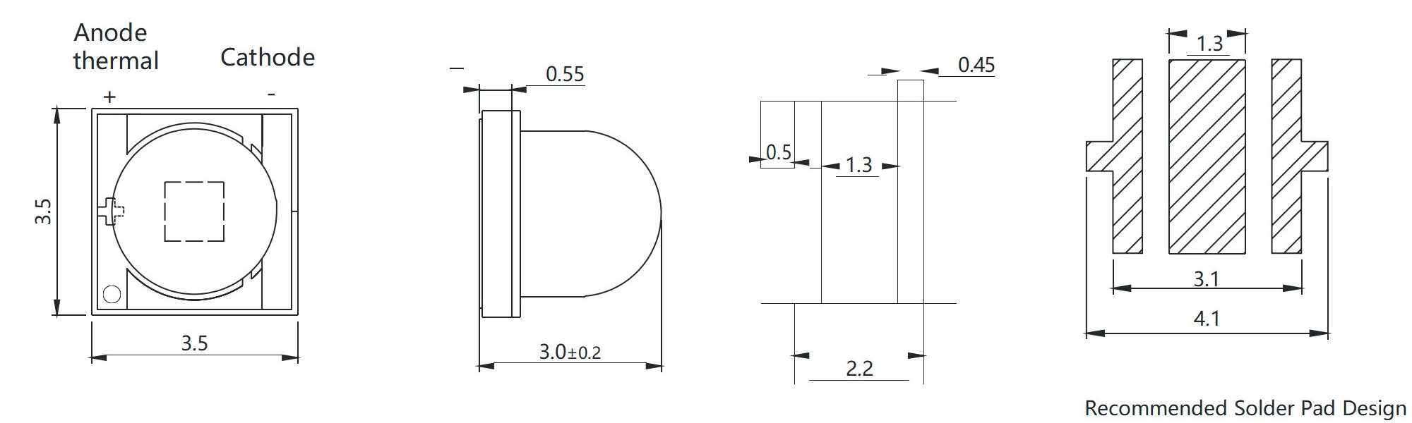 - 包装尺寸:3535(3.5X3.5 毫米),3838(3.8X3.8 毫米)