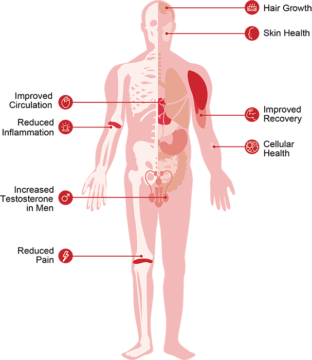 - Recovery: Stimulates mitochondria and stem cells for faster repair